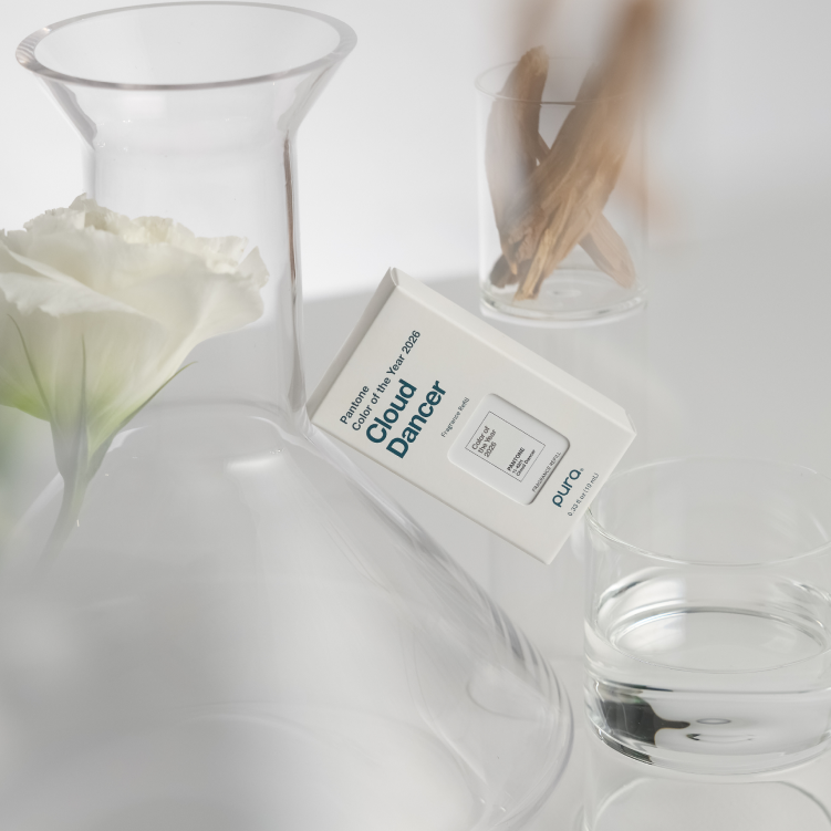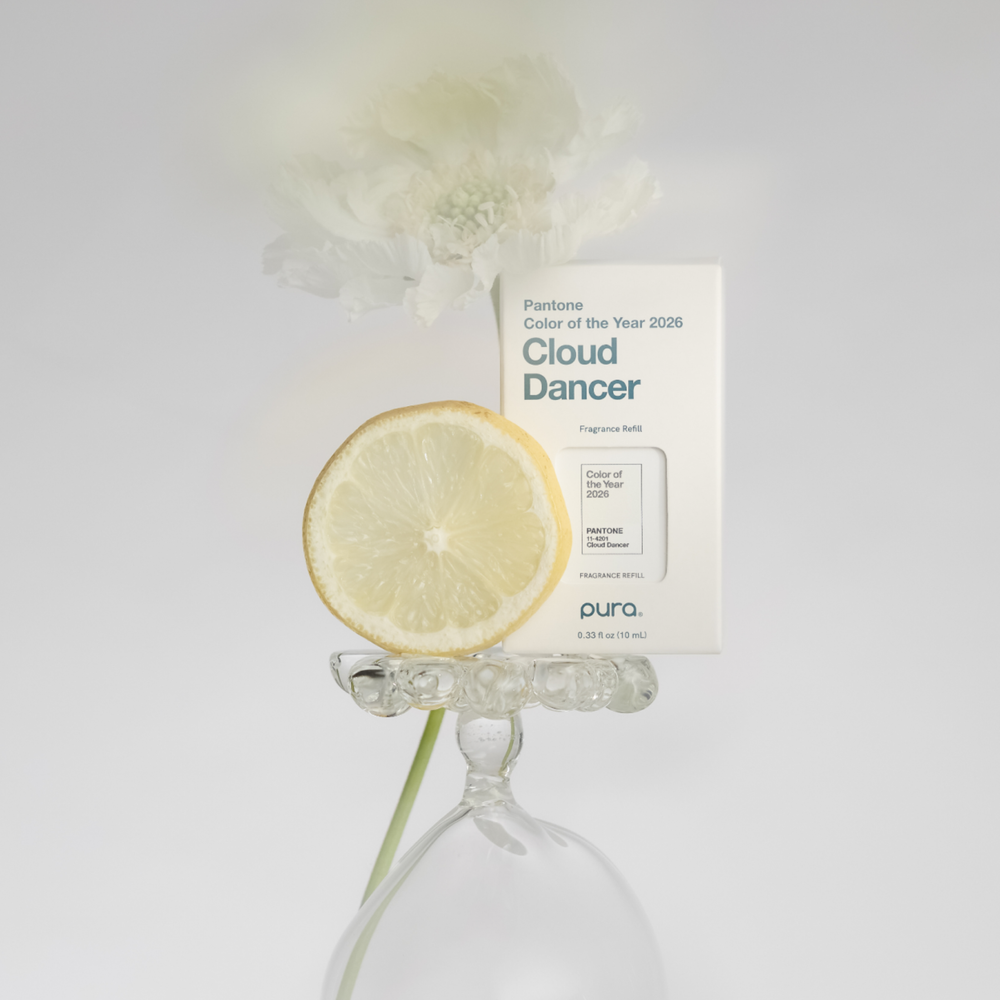 Color and scent unite to create something you can truly feel. Through Pura’s scent expertise and Pantone’s global vision, Cloud Dancer transforms a serene white hue into a calming sensory experience—a quiet moment that invites creativity, lets the mind drift, and gently centers the soul.