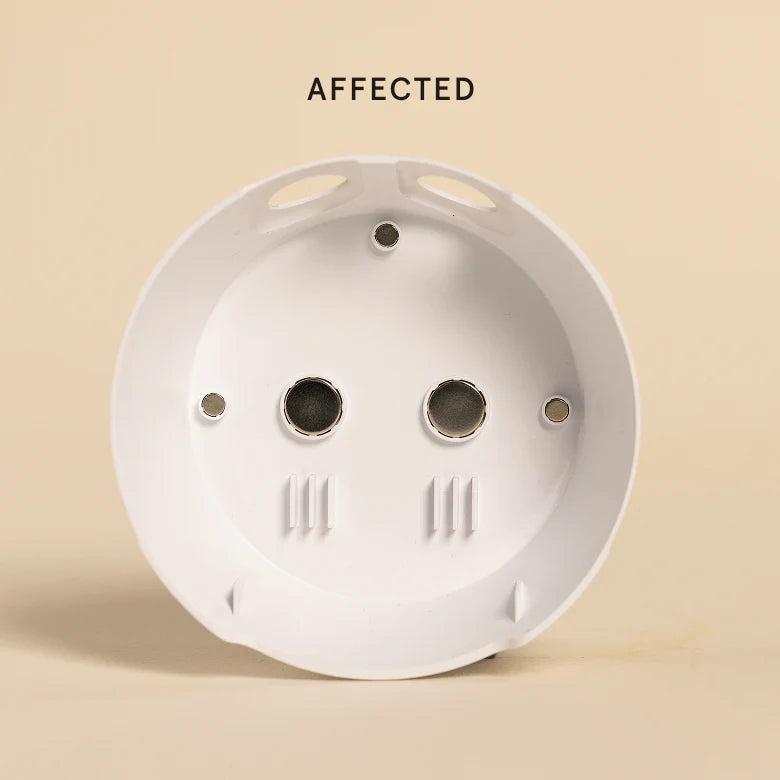The covers on select Pura 4™ devices have 5 magnets. The two larger magnets in the center may become dislodged, posing risk of injury if ingested. Out of an abundance of caution, we are proactively and voluntarily replacing the affected covers out of our ongoing commitment to your well-being and peace of mind.