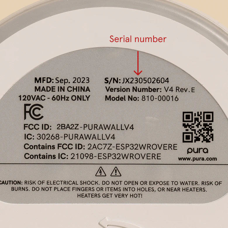 - Locate your serial number – Found on the back of your Pura 4™ device.