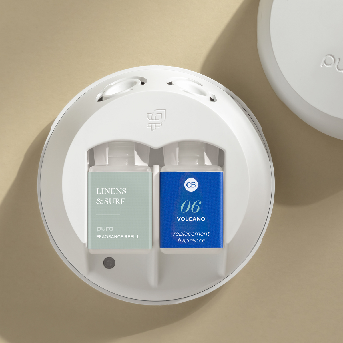 This set includes two signature scents, Capri Blue’s Volcano and Pura’s Linens & Surf, and a Pura 4 smart fragrance diffuser.