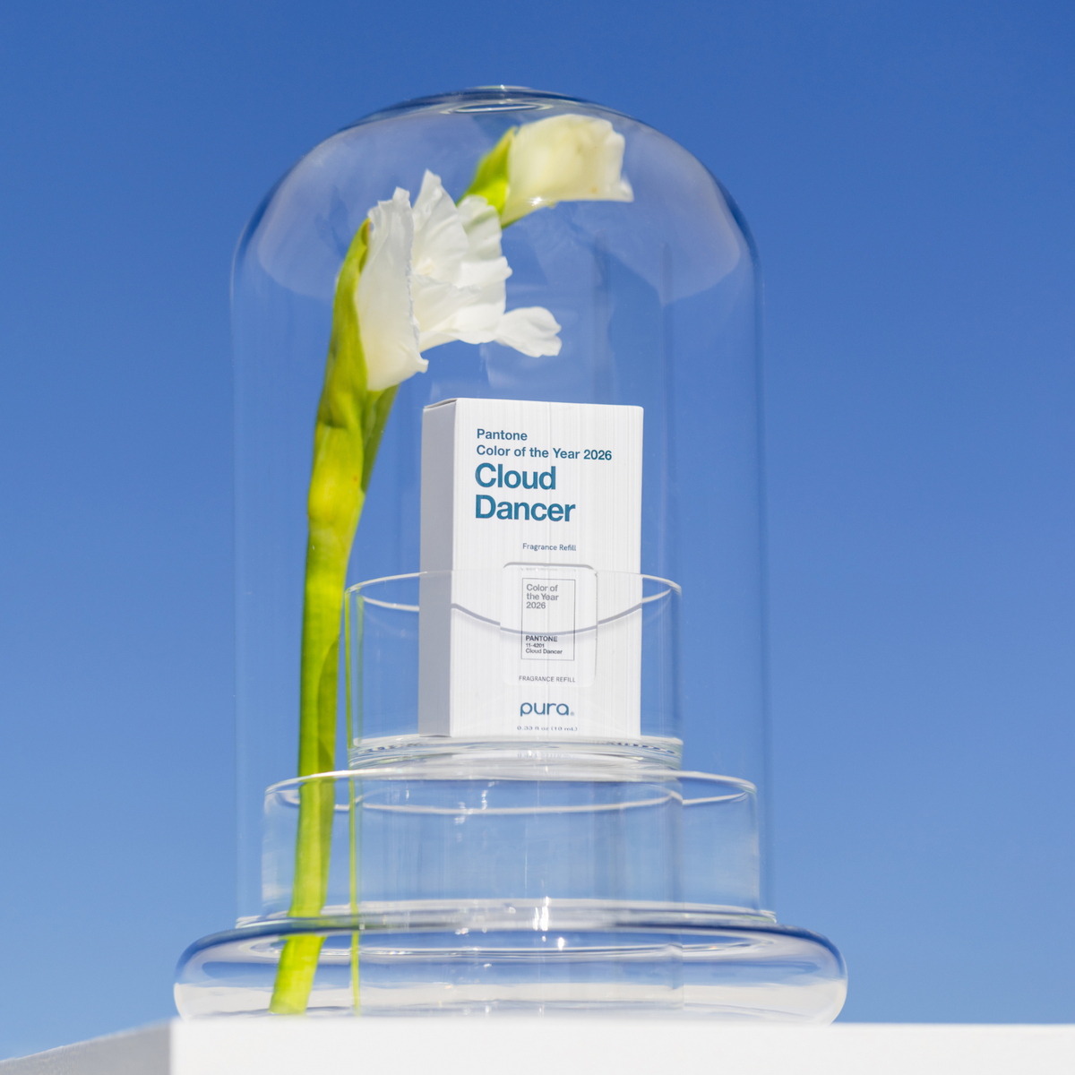 The Pura x Pantone collaboration is an energetic exploration of color experienced as scent and the roles these two elements play in design. Experience the ethereal fragrance translated from the highly anticipated Pantone Color of the Year 2026, PANTONE 11-4201 Cloud Dancer. This is the scent of color.