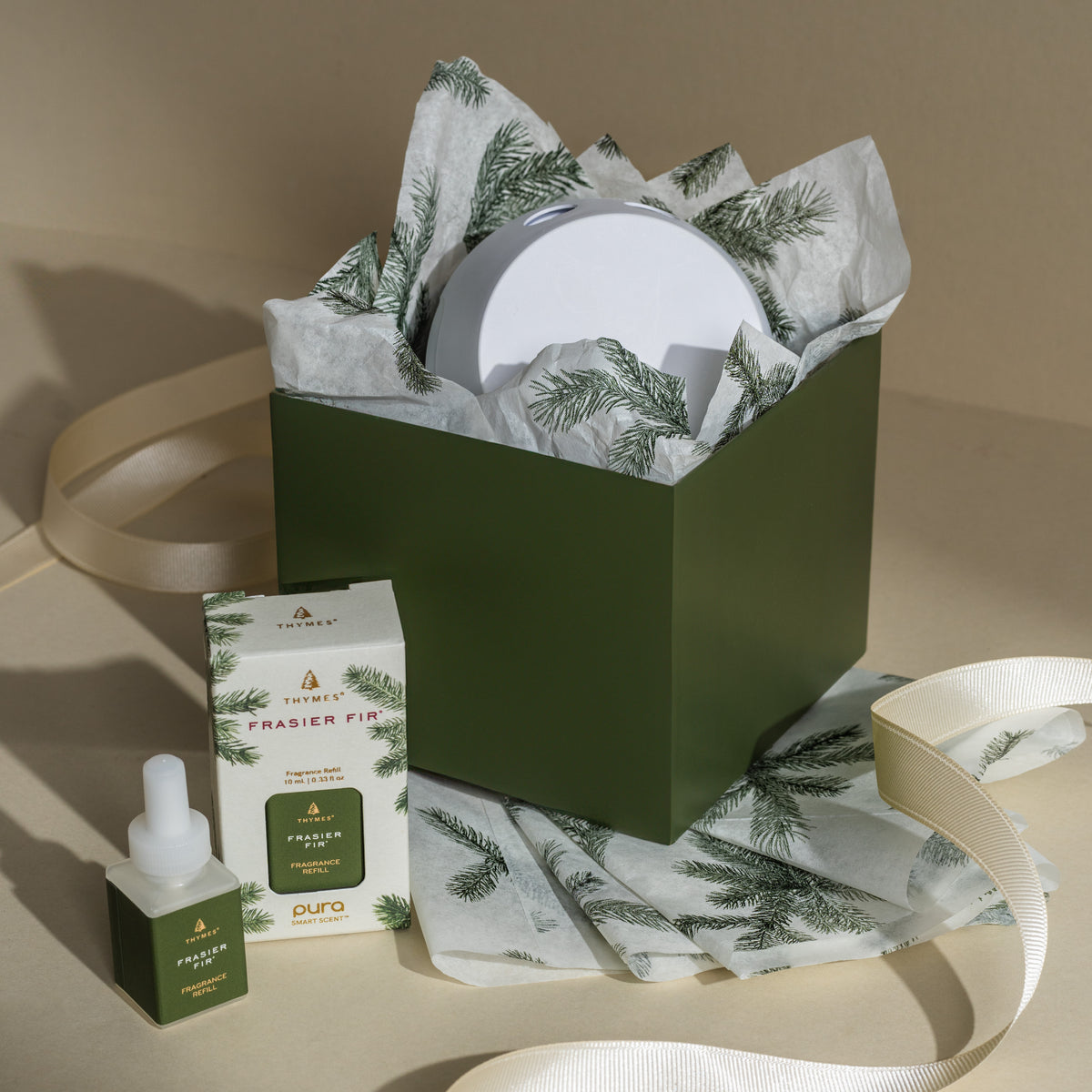 Bring your favorite fragrance to every gifting experience this season with long-lasting, festively scented tissue paper. Thyme’s Frasier Fir is the perfect finishing touch with notes of Siberian fir, cedarwood, and sandalwood.