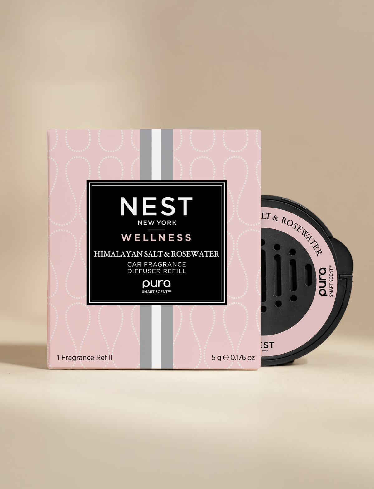 This relaxing, floral scent transforms your drive into a serene oasis filled with calming rosewater, cheerful geranium, and grounding salted amber.